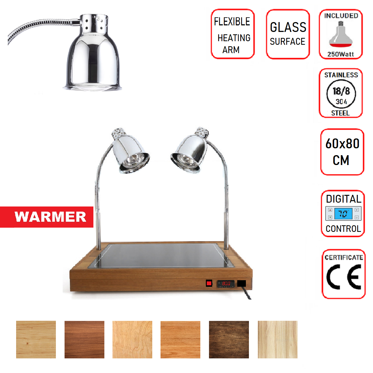 Isıtıcı Ampuller Yukarıdan Isı verirken , Servis Ünitesinin Cam Yüzeyi Yiyecekleri alttan sıcak tutmaya yardımcı olur,